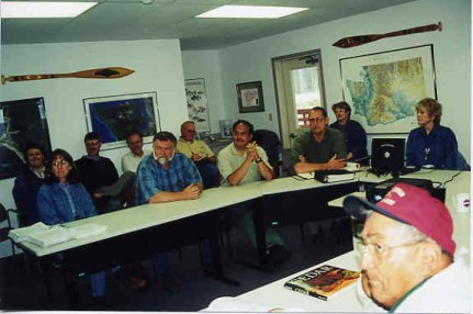 Chris Penn, Jr. (right, in ballcap, foreground), who was a witness in the famous Boldt fishing case of 1974, advises the Quileute and visiting US Forest Service staff on traditional use of plants, including cedar